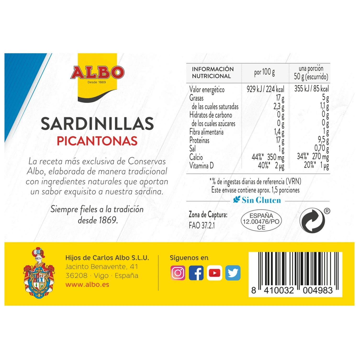 Peso escurrido 105 gr.