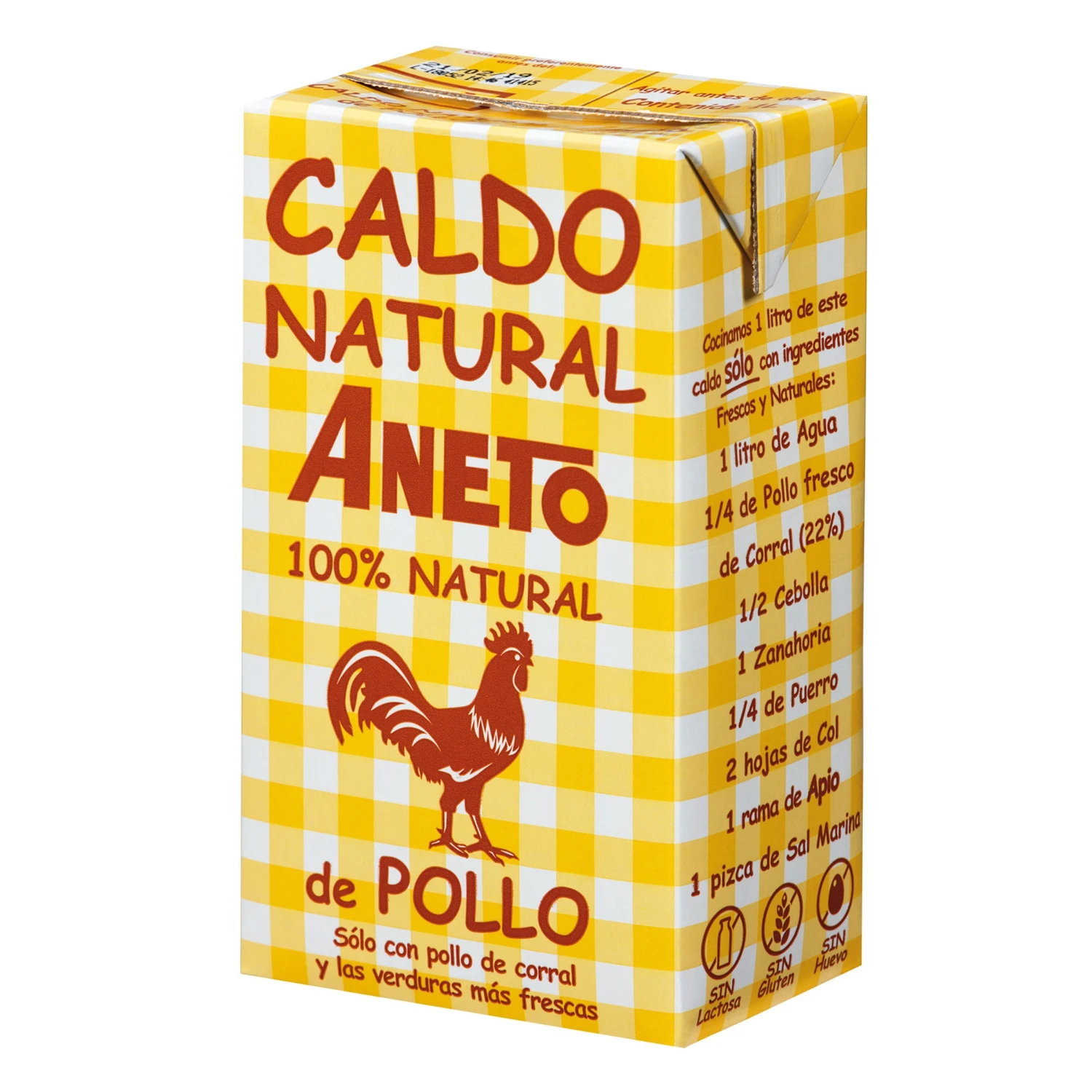 Caldo de pollo 100% natural sin gluten y sin lactosa.