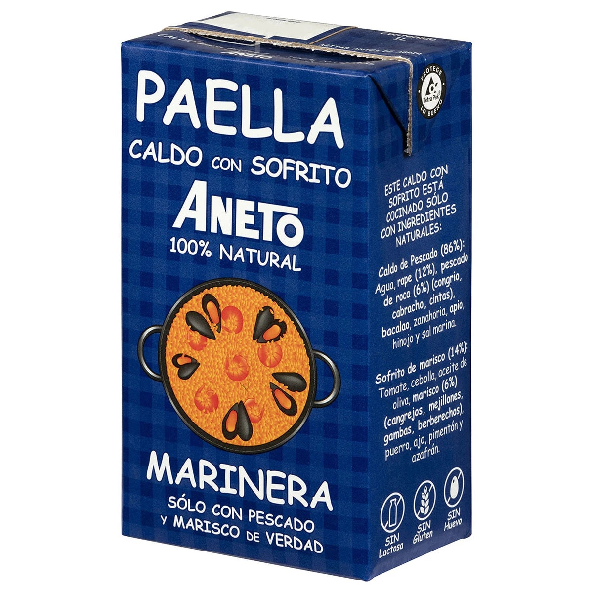 El auténtico sabor mediterráneo en tu paella. El caldo ANETO está elaborado con ingredientes 100 % naturales: pescado fresco, mariscos, verduras y aceite de oliva virgen extra, cocidos lentamente durante más de 2 horas para obtener un sabor casero e intenso.