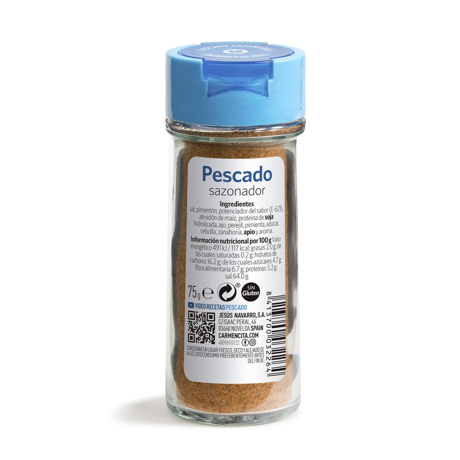 Sal, pimentón, potenciador del sabor (E-621), almidón de maíz, proteína de soja hidrolizada, ajo, perejil, pimienta, azúcar, cebolla, zanahoria, apio y aroma.