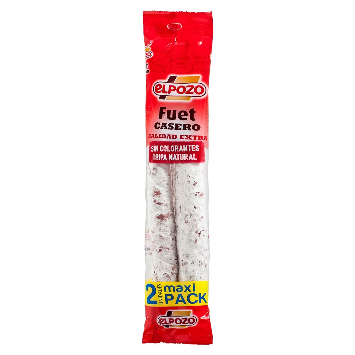 EL POZO Fuet casero de categoría extra viene en un práctico pack de 2 unidades de 150g cada una. Este delicioso embutido está embuchado en tripa natural y no contiene colorantes, ofreciendo un sabor auténtico y tradicional. Perfecto para disfrutar en tapas o como aperitivo.