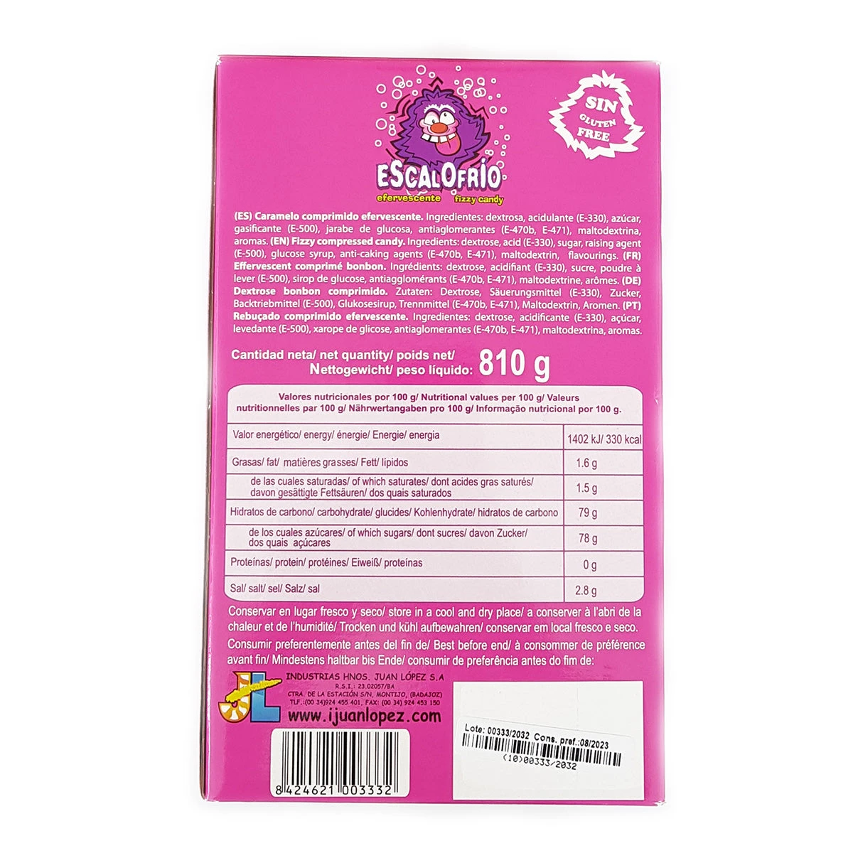 Caramelos comprimidos en sobrecitos de diferentes sabores (fresa, limón, cola y naranja). Sin gluten.