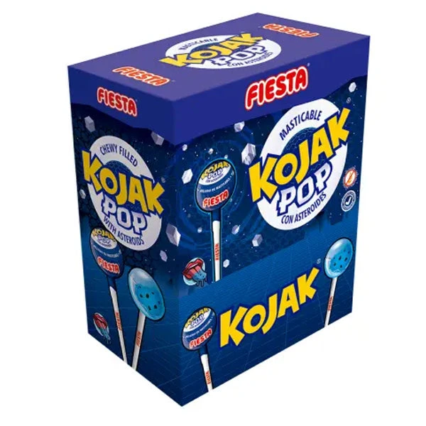 Disfruta ahora de los novedosos Kojak Stellar, con asteroides. Con delicioso >sabor a mora y pintalenguas. Rellenos con caramelo masticable.