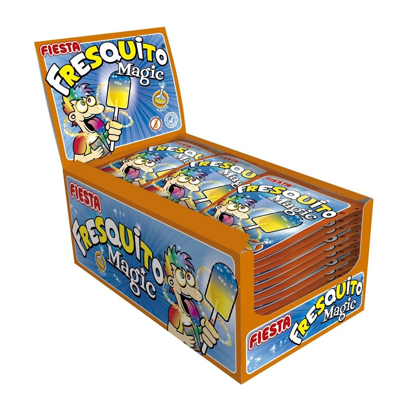 Fresquito Magic Caramelo con Palo en Sobre con Polvo Acidulado Sabor Mandarina y Fresa.