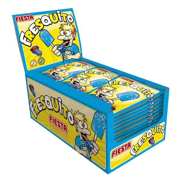 Fresquito Pintalenguas Caramelo con Palo en Sobre con Polvo Acidulado Sabor Mora.