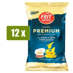 Patatas fritas con sabor a queso de cabra y cebolla caramelizada.