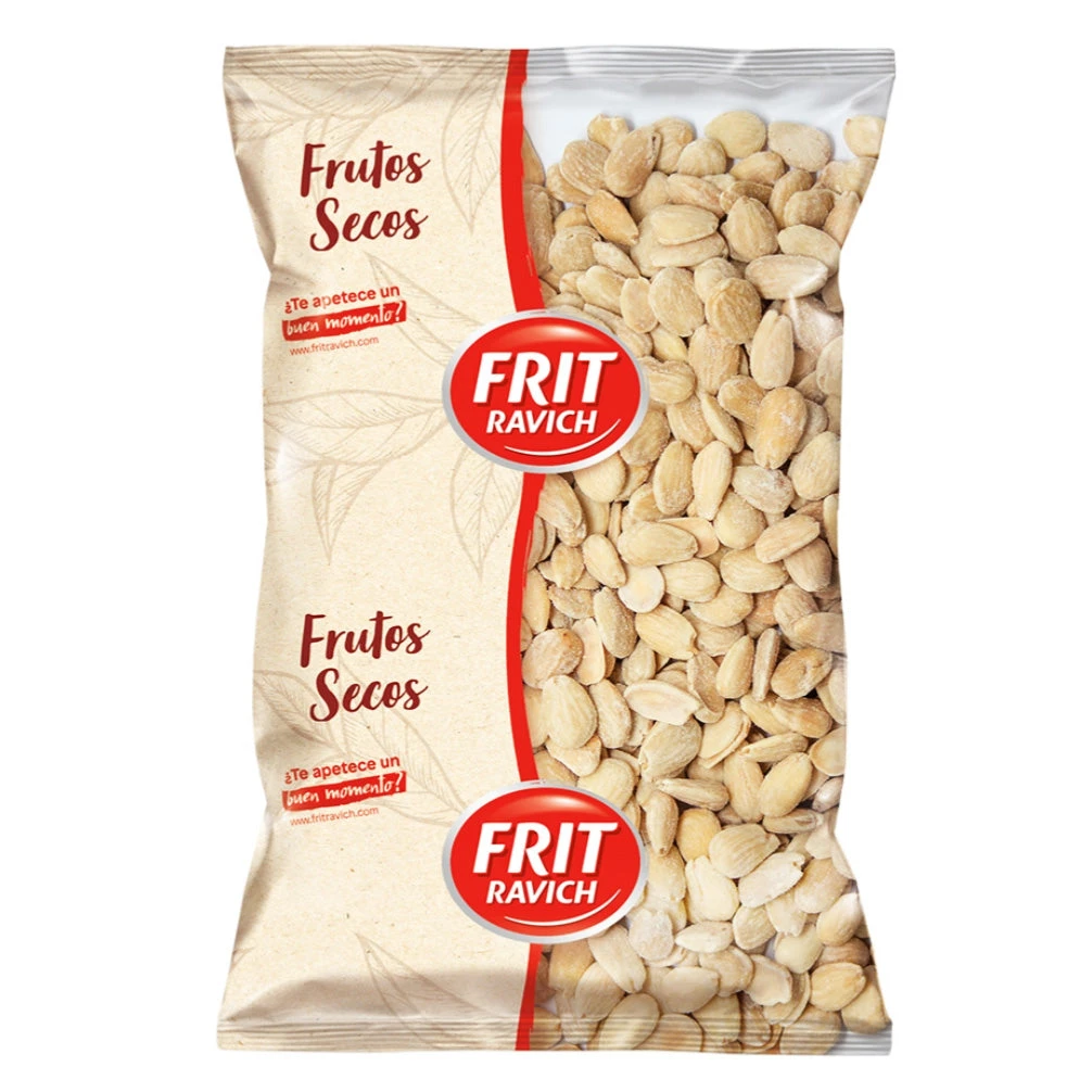 Almendras repeladas, aceite de girasol, sal.